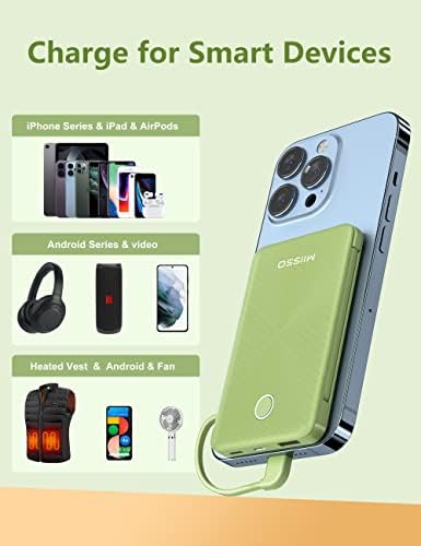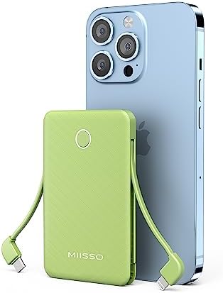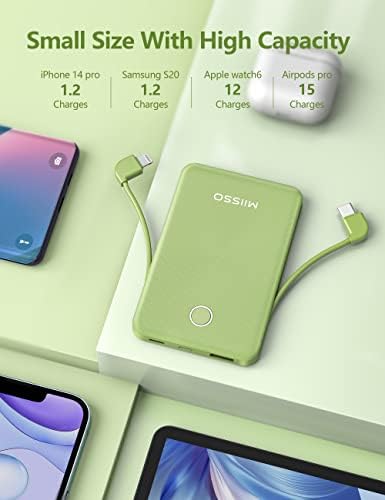 Credit Card Size: It is the slimmest and the smallest of MIISSO portable chargers with cables, only 0.27lb(122g) and its body like a credit card. The lightweight design lets you take it out without pressure. It’s slim enough to put it in your pocket or in your handbag.