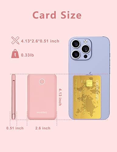Credit Card Size: It is the slimmest and the smallest of MIISSO portable chargers with cables, only 0.27lb(122g) and its body like a credit card. The lightweight design lets you take it out without pressure. It’s slim enough to put it in your pocket or in your handbag.