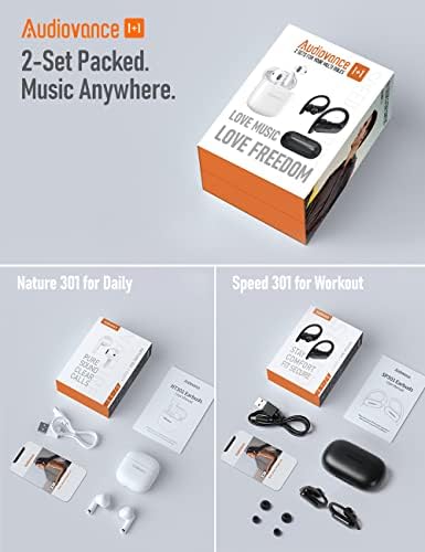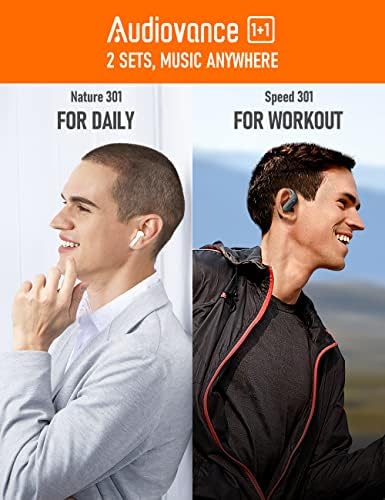 Music Anywhere: There’s not any type of wireless earbuds able to fit all scenarios in your daily life. Then, how about two types? Audiovance SPNT301 provides 2 sets with 2 types of Bluetooth earbuds for you to enjoy music anywhere in daily/working/workout. Furthermore, 2 sets for the expense of 1 set make it a great deal, including Speed 301 and Nature 301.