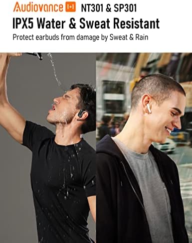 Crystal-Clear Call: SP301 wireless headphones features 2 mics and CVC (Clear Voice Capture) tech., NT301 ear pods features 4 mics and ENC (Environmental Noise Cancelling) tech. Focus on your voice, filter out ambient noises during phone calls, keep your voice sounding clear & loud.