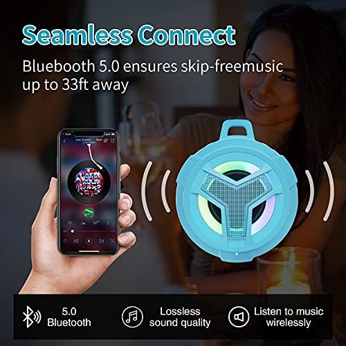 ♬【5 LED LIGHT PATTERNS】Waterproof shower Bluetooth speakers can light up your life. You can enjoy the LED light show when you using the portable wireless Bluetooth speaker listen music. Night Light Changing Wireless Speaker with 5 patterns of LED light let your life become more interesting. Our Cool LED Bluetooth Speaker can be as a gifts for men, women, your friends or kids.