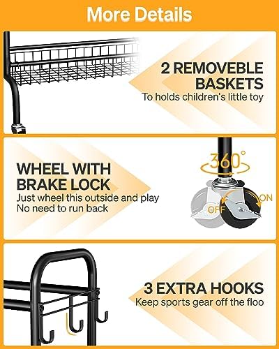 👍 【MULTI-OCCASION APPLICATIONS】: This sport utility storage organizer is ideal for a game room, garages, basement, playgroup, gym, and schools for any workplace.It Keeps the sports equipment items easily reach and well-organized.