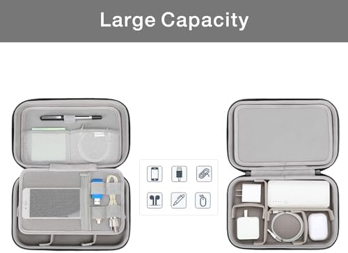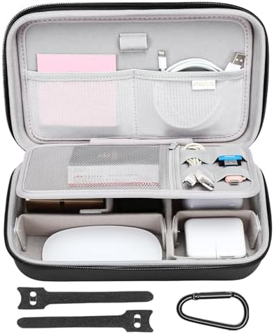 This multifunctional electronics carrying case storage bag is designed to be compatible with MacBook power adapter, compatible with Magic Mouse & Pencil, compatible with AirPods, SD card, cable, charge, power bank, USB flash disk and other accessories. Compact design with handle & snap hook which makes it easier to carry in backpack, suitcase, luggage or hanging around wrist.