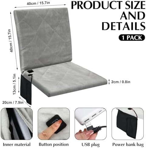 Quality Materials: our portable seat cushion is made of quality cationic fabric and memory foam, ensuring a comfortable and warm seating experience while maintaining durability, elastic band design secures the cushion to the seat, and small side pockets can be applied to store power bank, note: power bank not included; Whether you’re traveling or camping, you can enjoy the warmth and comfort it provides