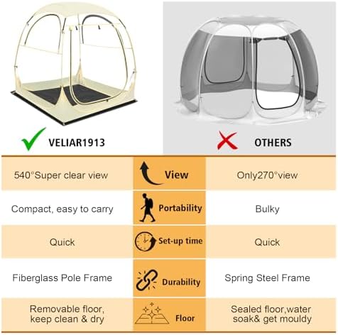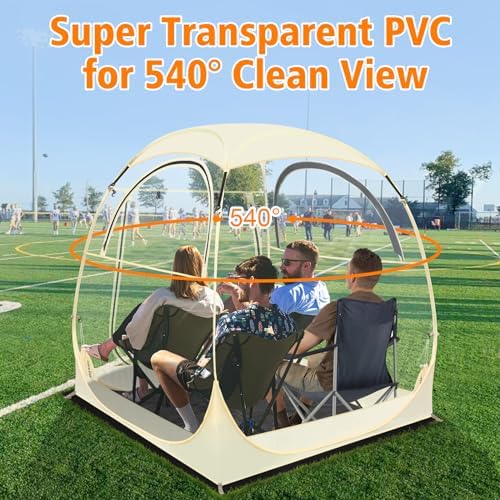 Crystal Clear View: Made with a sturdy fiberglass frame and durable fabric, this sports tent is designed with ultra-transparent PVC, providing a clear 540-degree panoramic view that is perfect for various outdoor activities.