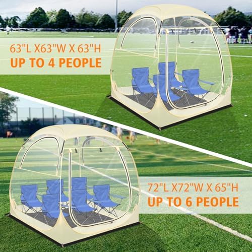 Spacious and Stable: With dimensions of 63″x63″x63″H, this bubble tent provides a spacious and comfortable shelter that can accommodate up to 3-4 people. Whether you’re cheering for your team or enjoying outdoor activities together, it offers a comfortable experience.
