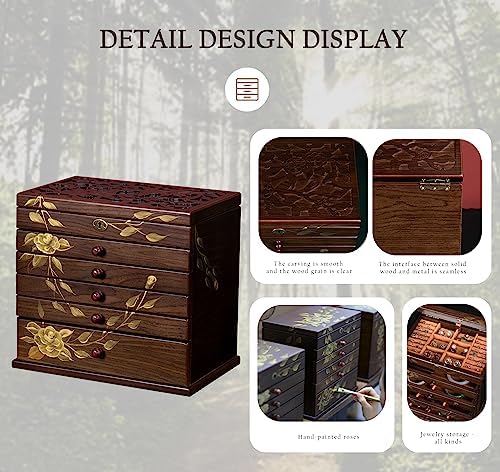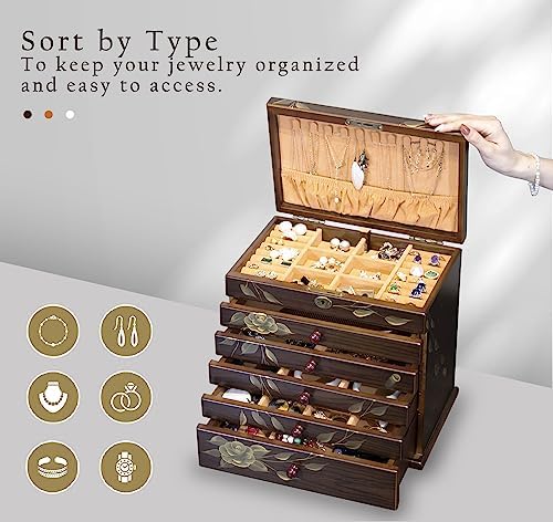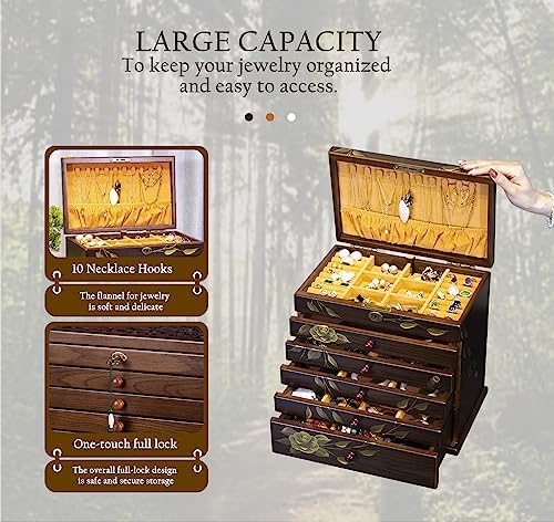 πππππππ πππππ πππποΌ 6 layer wooden jewelry organizer box is made of 100% natural wood, durable, colorfast, waterproof and easy to clean. The inner rust-resistant bead fleece protects your jewelry from dust, fingerprints, scratches and damage. glossy & exquisite wood clasp, The large wooden jewelry box can last for years.